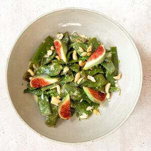 Nu de vijgen volop in het seizoen zijn, zijn ze te lekker om hier niet bij te gebruiken. Ze zijn zoet, sappig en hun smaak combineert in perfecte harmonie met de snijbonen in witte wijnsaus. Dus ga vooral op zoek naar goede vijgen op de markt of bij de groenteboer, want deze wil je er echt bij eten!